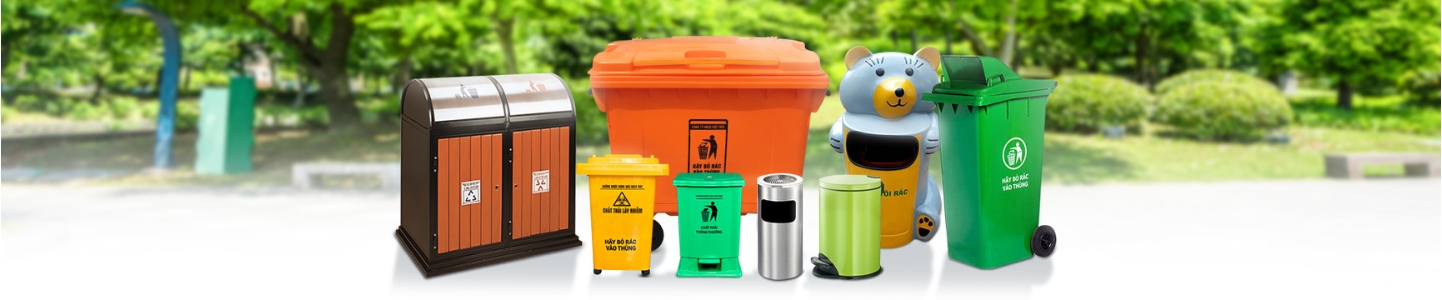 - Tổ chức công cộng (trường học, công viên…): Cần thùng rác nhựa dung tích lớn (120L-1100L), có bánh xe, nắp kín, bền màu, chịu va đập.