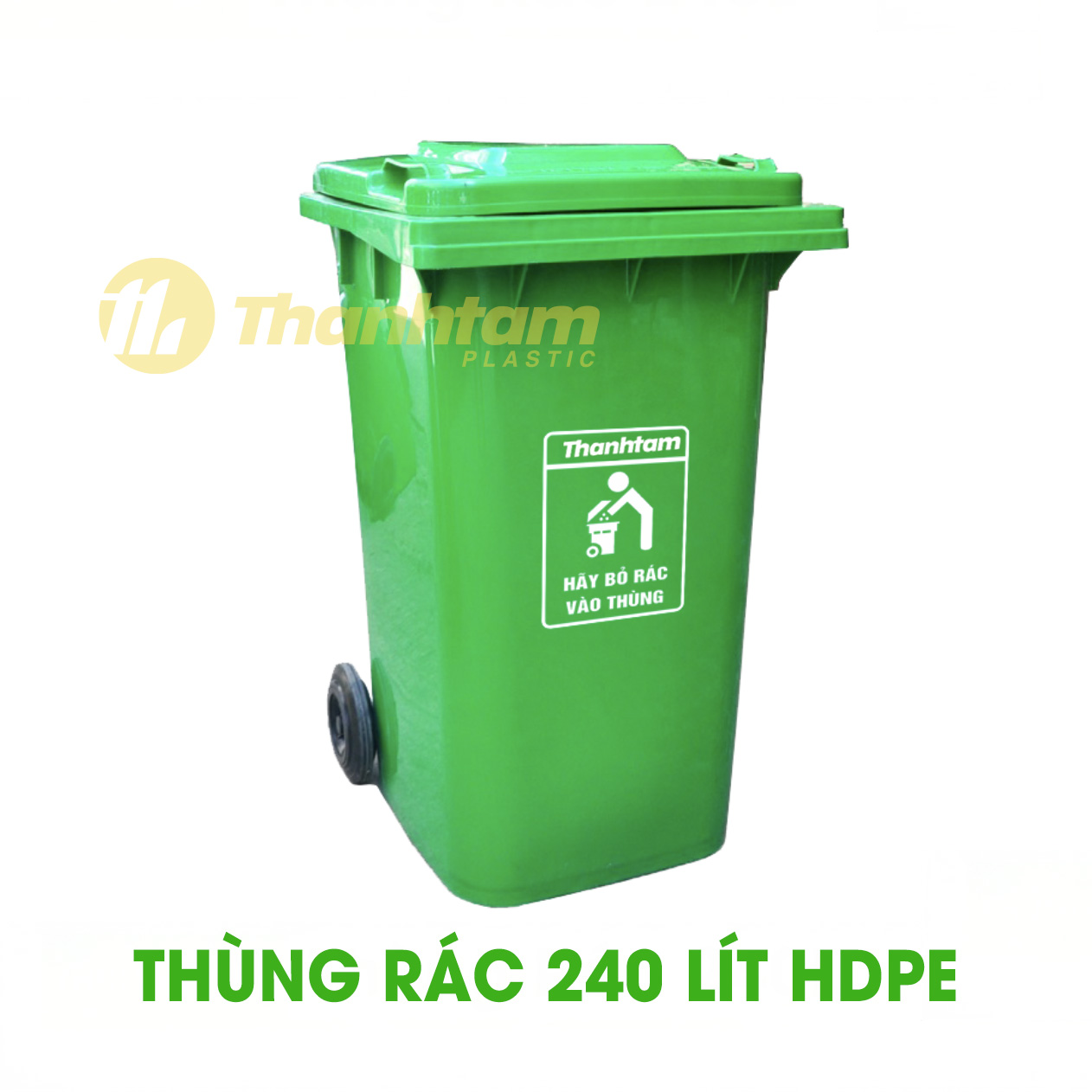 Thùng rác HDPE 240 lít từ Thành Tâm Plastic là giải pháp hiệu quả, bền bỉ và đáng tin cậy cho việc quản lý rác thải quy mô lớn tại các khu vực công cộng, khu dân cư, trường học, bệnh viện và công nghiệp. Với dung tích lớn, chất liệu HDPE cao cấp, thiết kế chắc chắn với bánh xe và nắp kín, cùng sự đa dạng màu sắc, sản phẩm này là sự đầu tư thông minh, giúp giải quyết bài toán rác thải một cách hiệu quả, góp phần giữ gìn vệ sinh môi trường và nâng cao chất lượng cuộc sống cộng đồng.
