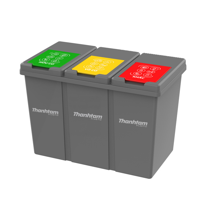 Thùng rác 3 ngăn 180 lít được chia thành 3 ngăn riêng biệt (mỗi ngăn 60 lít), cùng chất liệu nhựa PP nguyên sinh bền đẹp và tính năng nắp lật vệ sinh, sản phẩm từ CÔNG TY SẢN XUẤT NHỰA THÀNH TÂM PLASTIC này phù hợp đặt tại các điểm thu gom rác tập trung, giúp người sử dụng dễ dàng phân loại rác và góp phần tạo nên không gian sạch đẹp, văn minh.