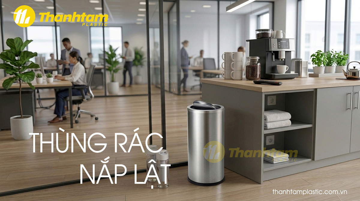 Thùng rác inox nắp lật được ứng dụng rộng rãi trong nhiều không gian khác nhau. Tại văn phòng, sản phẩm thường đặt ở góc phòng, hành lang hoặc khu pantry để giữ môi trường làm việc luôn gọn gàng.