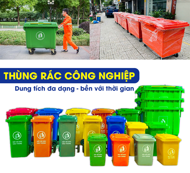 - Thùng 660L–1000L phục vụ khu công nghiệp, bệnh viện, khu đô thị.